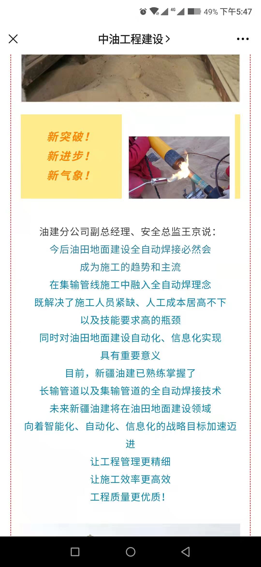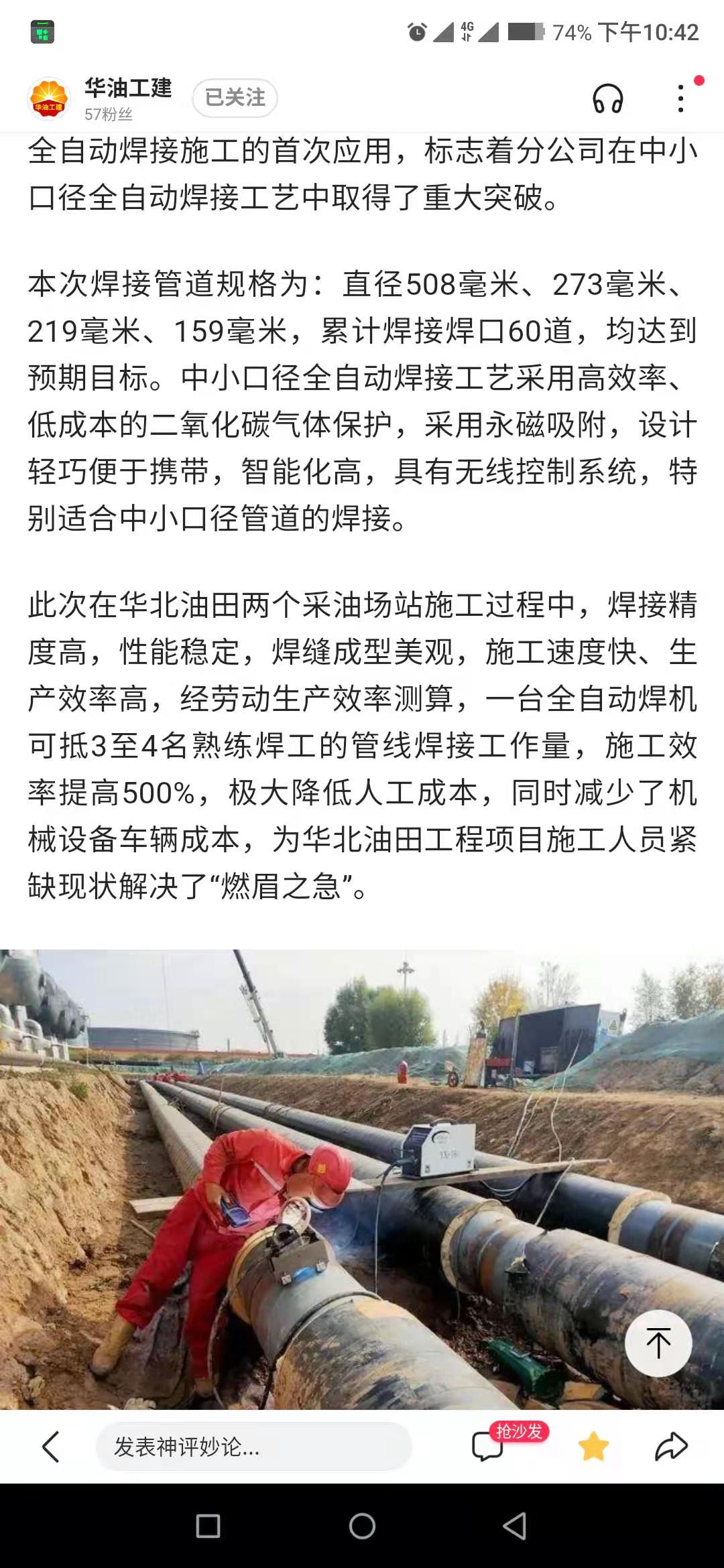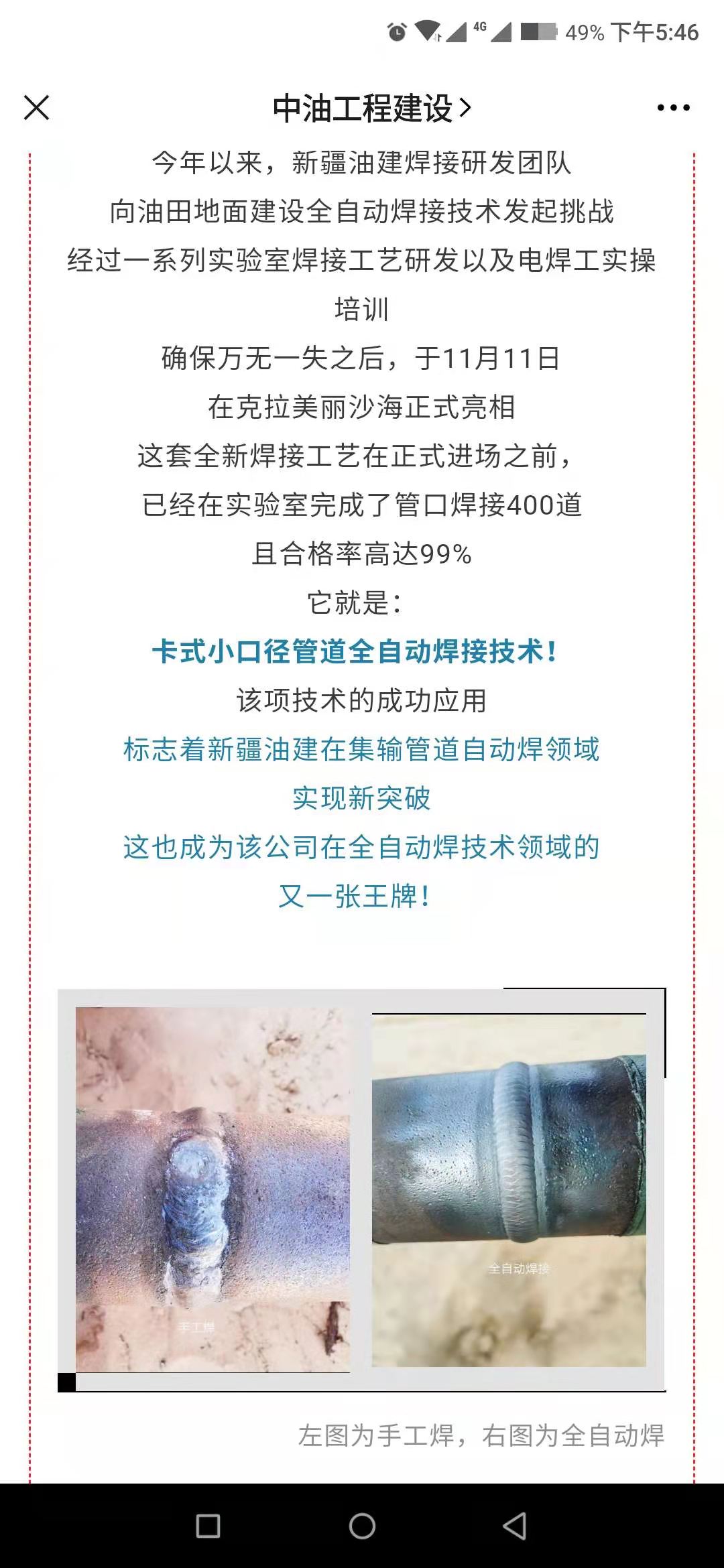 自动焊因焊接效果快,成本低,是管道焊接趋势。有培训进修自动焊和需要焊机焊材的可联系:15538876654 张老师,微信同上
