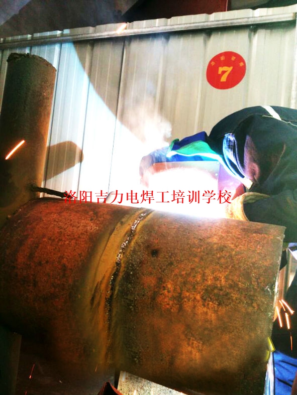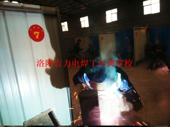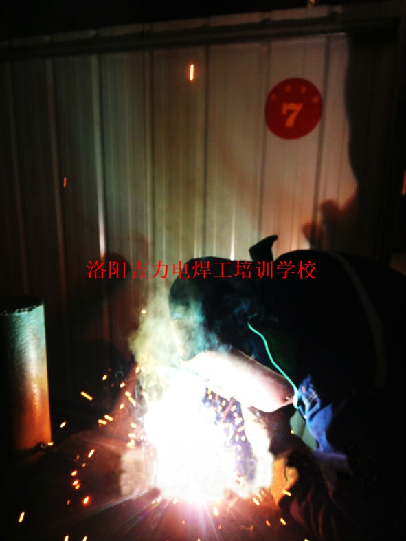 2016年1月,洛阳洛阳吉力电焊工培训中心下向焊半自动项目的培训学员在紧张焊接操作中。