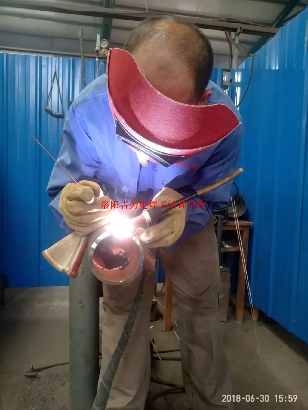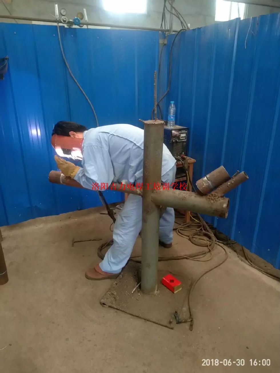 管道下向焊培训衣服都透了