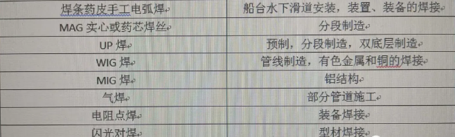 船舶制造过程中一定要用到焊接技术,根据船舶大小和种类的不同,焊接占整个生产制造工作量的20%-40%,在船舶制造过程中通常能用到如下工艺: