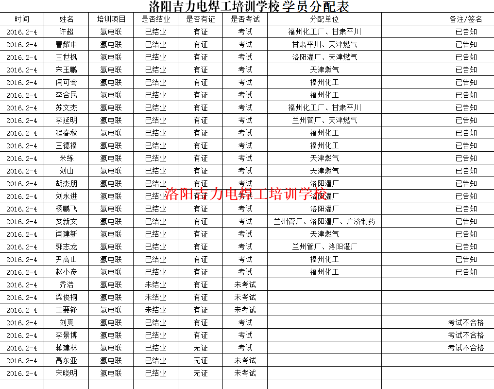 工作分配介绍要求: 1.已结业学员考试合格、有焊工证,人品道德良好无不良记录者均免费考试。 2.培训未满15天学员,考试合格、有焊工证,人品道德良好无不良记录者,自费考试。 3.社会人员,考试合格,有焊工证,人品道德良好无不良记录者,参加招聘考试费用自费。